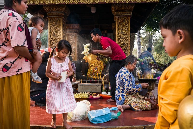 Uno dei tratti distintivi di una grande foto di strada è quello di far posizionare ogni componente, così che da un miscuglio di persone, oggetti con lo sfondo, tutto abbia il suo spazio . In questa interpretazione di questo santuario buddista lungo la strada in Cambogia tutto è al suo posto, e la gente ha una reale presenza all’interno dello scatto. È difficile trovare difetti in uno qualsiasi dei dettagli di questa immagine, e so quanto sia difficile farlo.