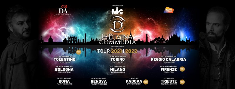 Il più complesso racconto dell’animo umano, della sua miseria e della sua potenza, tra vizi, peccati e virtù che non conoscono l’usura del tempo, prende la forma dello spettacolo di voci, danze e tecnologia in un allestimento così straordinario da far guadagnare a La Divina Commedia Opera Musical la Medaglia d’oro dalla Società Dante Alighieri, il titolo per ben due volte di Miglior Musical al Premio Persefone edizione 2019 e edizione 2020, e la partecipazione istituzionale nel 2021 con il riconoscimento del Senato della Repubblica, il patrocinio del Ministero della Cultura, oltre al sempre costante patrocinio morale della Società Dante Alighieri all’intero tour. Successo, riconoscimenti e presenze di grandissima valenza.